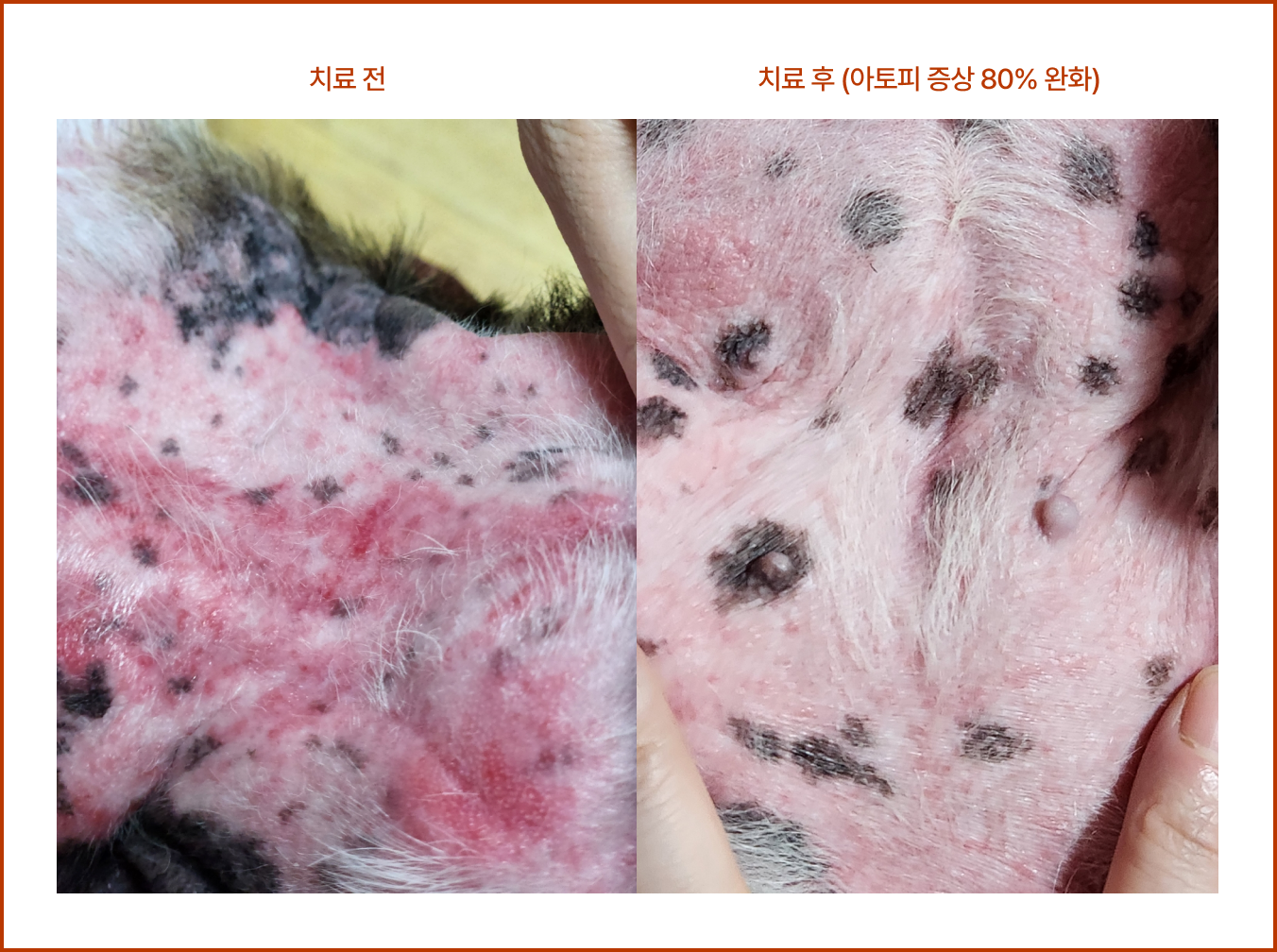 개에서 아주 흔하게 있는 아토피성 피부병은 반복적인 자극원에 의해 피부 장벽이 무너지는 난치성 질환으로 심한 소양감, 그리고 이차 감염으로 인해 아토피를 앓고 있는 개뿐만 아니라 보호자의 삶의 질도 매우 저하됩니다.